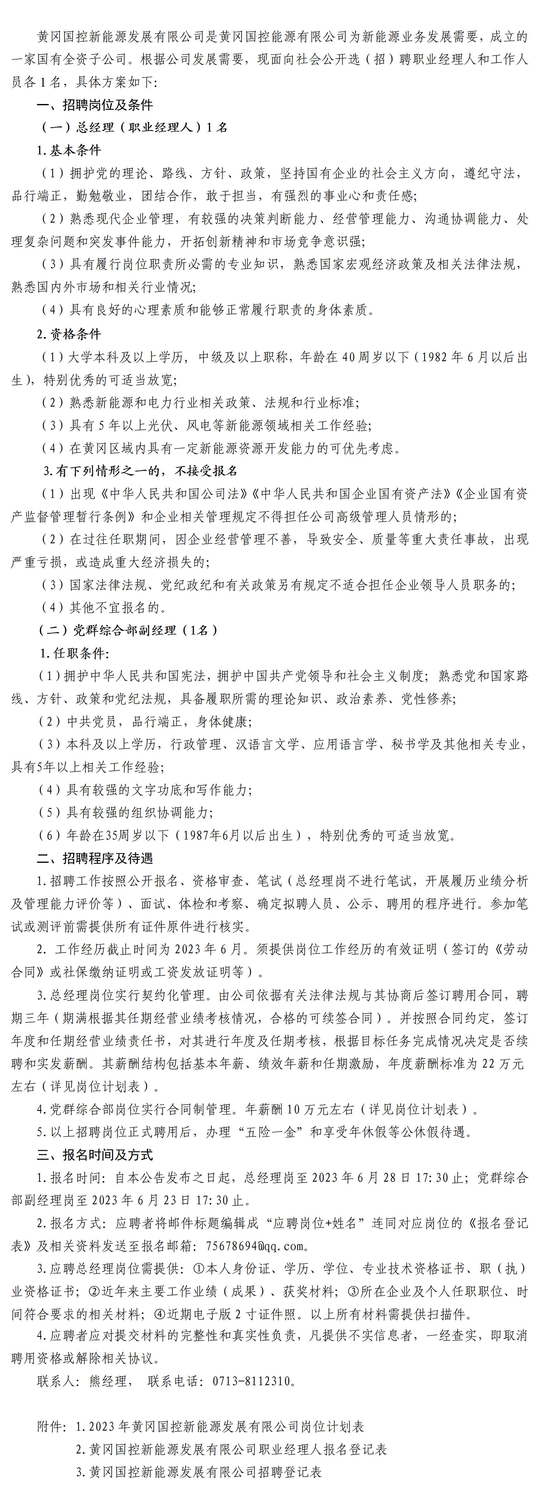 黃岡國控新能源發(fā)展有限公司選(招)聘公告