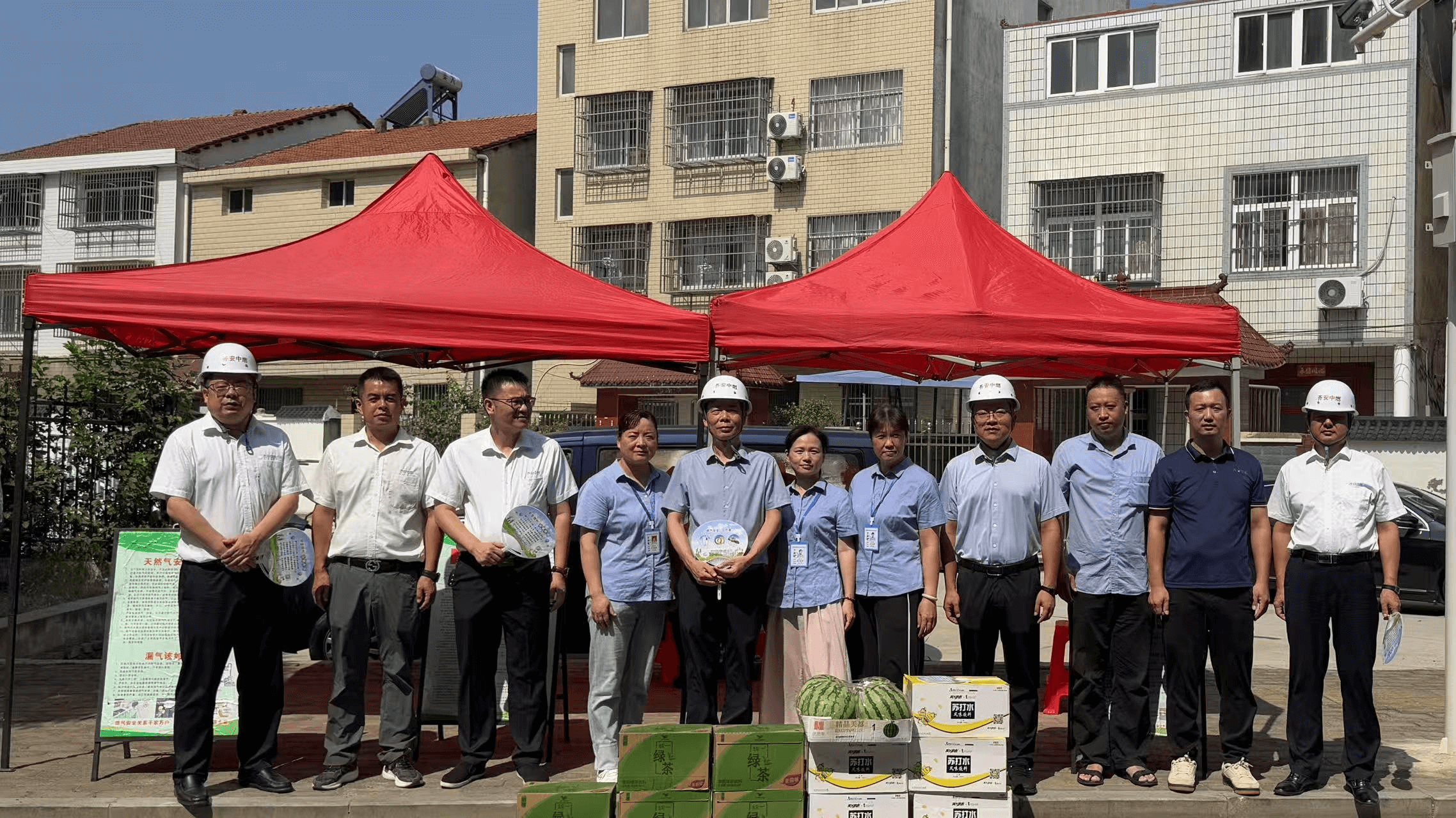 慰問組一行先后來到西湖村舊改項目以及安檢宣傳現場、黃岡市第二中學宿舍樓燃氣工程施工現場和南湖第二氣源站點。慰問組實地檢查了工程安全、施工進度及燃氣宣傳工作,并向堅守崗位的職工送去西瓜、綠茶、蘇打水等防暑物資。何愛良感謝大家的辛勤付出,并強調:一要增強高溫安全意識,嚴防安全事故;二要科學安排作業(yè)時間,避開高溫時段,保障員工休息;三要堅持安全生產與防暑降溫“兩不誤”。