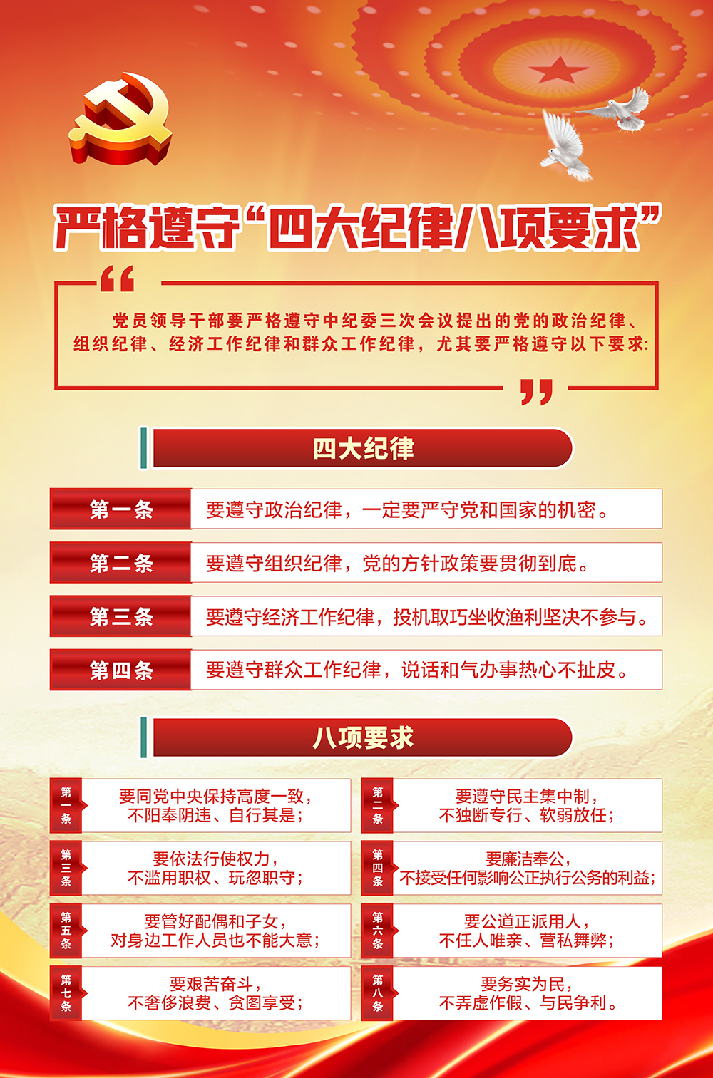中國(guó)共產(chǎn)黨全體黨員和各級(jí)黨員領(lǐng)導(dǎo)干部必須堅(jiān)定共產(chǎn)主義理想和中國(guó)特色社會(huì)主義信念,必須堅(jiān)持全心全意為人民服務(wù)根本宗旨,必須繼承發(fā)揚(yáng)黨的優(yōu)良傳統(tǒng)和作風(fēng),必須自覺..