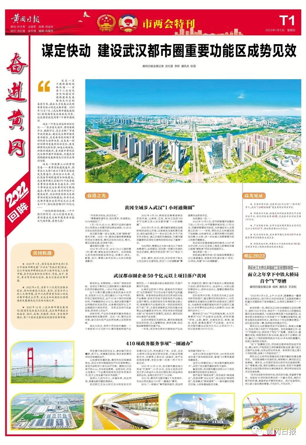 這是一份鼓舞人心的黃岡答卷——黃黃高鐵建成通車,鄂黃長江大橋9座以下客車實現(xiàn)惠民免費通行,燕磯長江大橋、武紅高速等硬聯(lián)通項目加快建設(shè);武漢都市圈已實現(xiàn)410個政務(wù)服務(wù)事項自助服務(wù)互通互辦,238個事項在武漢和黃岡間可跨城通辦;黃岡(光谷)離岸科創(chuàng)中心建成運營,光谷科技創(chuàng)新大走廊黃岡功能區(qū)加快建設(shè);全市與武漢都市圈企業(yè)簽約億元以上項目57個,協(xié)議投資額509.78億元……