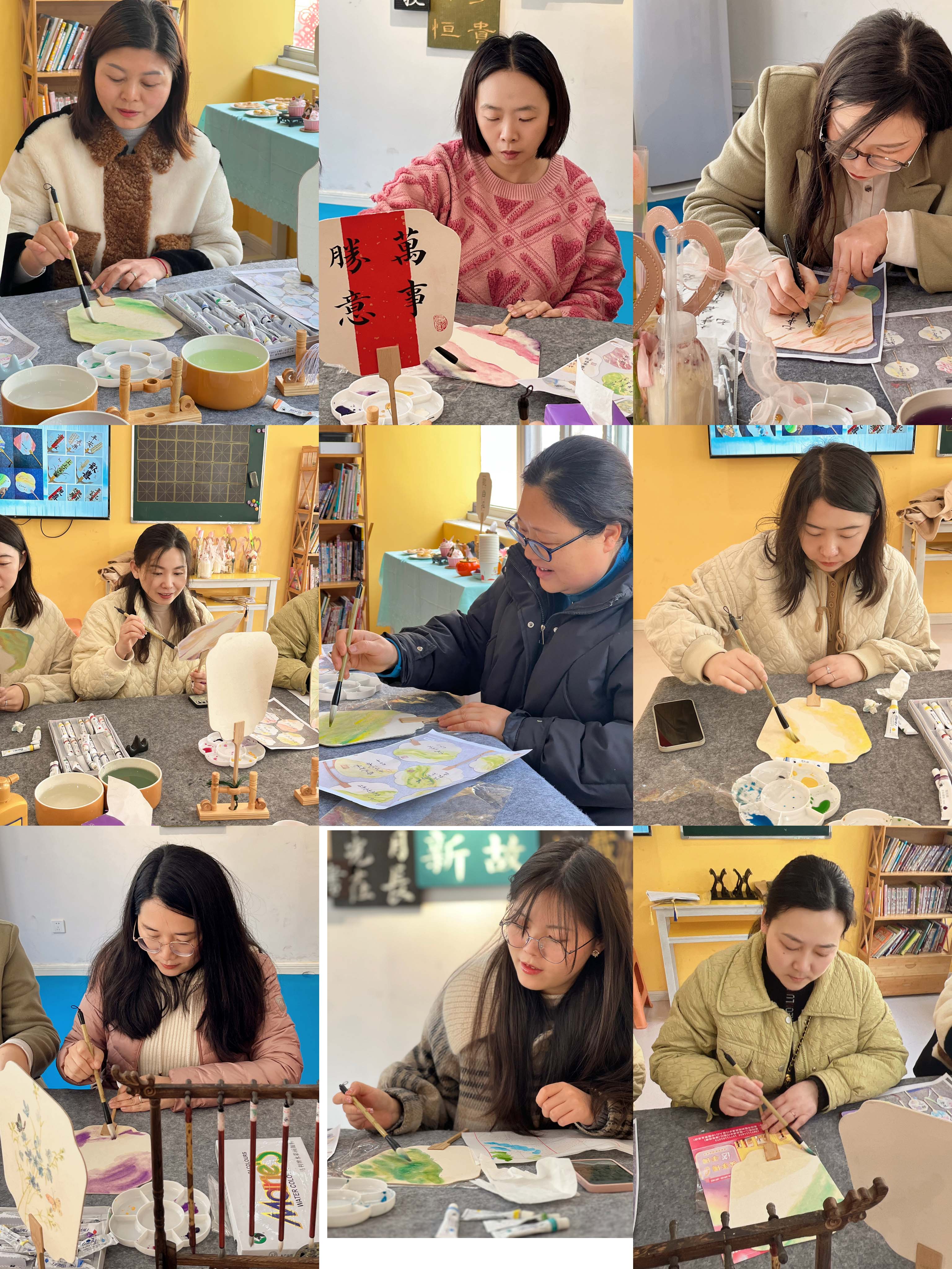 活動開始前,老師先向大家介紹了團扇的文化背景及制作方法。隨后向大家發(fā)放了空白扇子、毛筆和顏料等各種輔料工具。大家躍躍欲試,白描、運筆、上色,忙得不亦樂乎;顒又写蠹覠崆楦邼q,相互借鑒學習,現(xiàn)場充滿歡聲笑語。原本一片空白的團扇,在大家精心制作下變成了一把把色彩斑斕的“藝術品”。