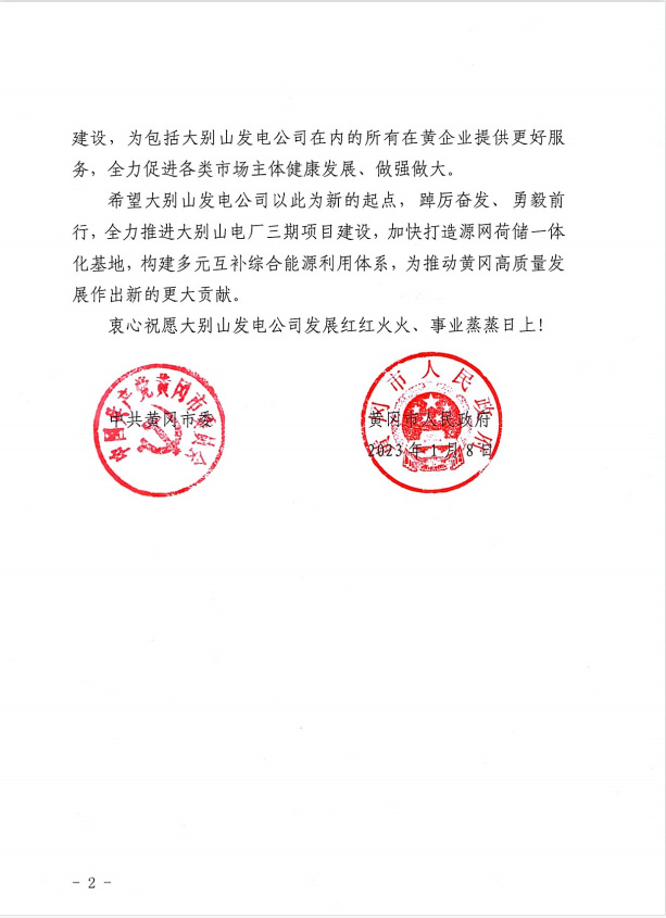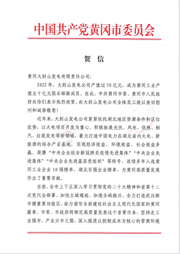 黃岡大別山發(fā)電有限責任公司總經(jīng)理汪紅旭收到賀信后深情地說:“我們深刻感受到黃岡市委、市政府對我們企業(yè)的大力支持,也深刻感受到黃岡市委、市政府重視發(fā)展工業(yè)的決心,我們將以火電項目開發(fā)為重心,積極拓展光伏、風電、供熱、制汽、垃圾發(fā)電等新能源領域,著力打造中國電力在湖北省內(nèi)火電、新能源的綜合產(chǎn)業(yè)基地。”