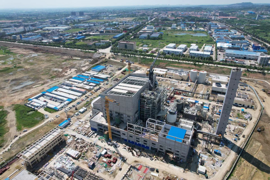 該項(xiàng)目位于黃岡市黃州區(qū)火車站化工園區(qū)內(nèi),由黃岡中電山水環(huán)保發(fā)電有限公司負(fù)責(zé)建設(shè)運(yùn)營,用地面積100.68畝,總投資為64383萬元。項(xiàng)目配置2臺(tái)600t/d機(jī)械爐排垃圾焚燒爐以及2臺(tái)中溫次高壓余熱鍋爐,并配套1臺(tái)25MW凝汽式汽輪機(jī)發(fā)電機(jī)組,同時(shí)配套煙氣凈化系統(tǒng)、廢水處理系統(tǒng)、滲濾液處理系統(tǒng)、灰渣處理系統(tǒng)等環(huán)保設(shè)施,年運(yùn)行時(shí)長達(dá)到8000h,年發(fā)電量可達(dá)1.8億千瓦時(shí)。項(xiàng)目從2021年10月30日垃圾池第一罐混凝土澆筑主體正式開工建設(shè),歷時(shí)工期8個(gè)月,于2022年7月15日開始接收生活垃圾,并同步關(guān)停戚家?guī)X垃圾填埋場,7月30日一號(hào)機(jī)組正式點(diǎn)火,黃岡市區(qū)開始進(jìn)入生活垃圾處理的新時(shí)代。
