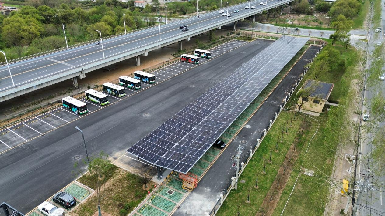 在項目建設(shè)過程中,公司積極探索創(chuàng)新,首次應(yīng)用“光伏建筑一體化(BIPV)”技術(shù),將單晶硅高效組件與建筑結(jié)構(gòu)深度融合。以城投大橋公交車站為例,該項目在解決傳統(tǒng)公交站場功能單一問題的同時,創(chuàng)新性地整合了光伏發(fā)電、智能充電、遮陽避雨等多重功能。頂棚采用透光率30%的定制化組件,覆蓋33個公交泊位,并配套建設(shè)40臺快充樁,實現(xiàn)了“停車即充電”,有效緩解了城區(qū)公交車輛停車難、充電貴、運營成本高等問題。同時,發(fā)電效率提升至22.5%,較傳統(tǒng)光伏車棚提高15%,開創(chuàng)了本地城市公共服務(wù)領(lǐng)域市場化運作與民生保障深度融合的新路徑。